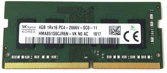 SK hynix HMA851S6CJR6N - VK Non ECC PC4-2666V 4GB DDR4 at 2666MHz 260pin SDRAM SODIMM Single Kit Laptop Memory - OEM