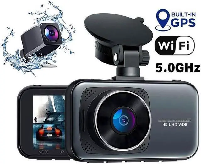 Real 4K 5G WiFi Dual Dash Cam with WiFi GPS, 2160P Car Camera with Free App, UHD 4K+1080P Driving recorder, 3 Inch Car Dash Camera, 24/7 Parking Mode, Night Vision, Emergency Lock, Loop Recording, G-sensor, Support 256GB Max