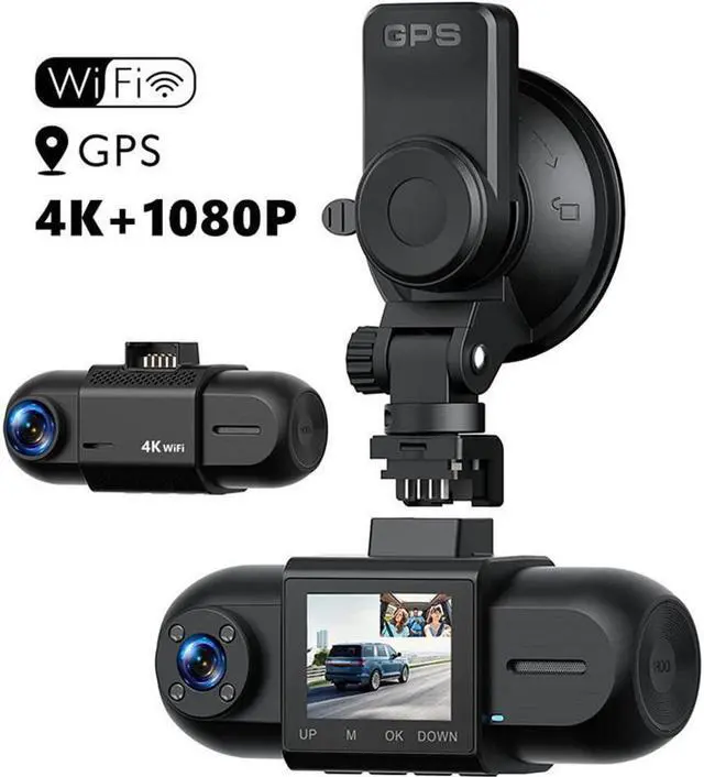 Real 4K 5G WiFi Dual Dash Cam with WiFi GPS, 2160P Car Camera with Free App, UHD 4K+1080P Driving recorder, 1.5 Inch Car Dash Camera, 24/7 Parking Mode, Motion Detection, ADAS Track Departure Warning, Forward Car Warning, Night Vision, Gravity sensor, Loop Recording, G-sensor, Support 32GB Max