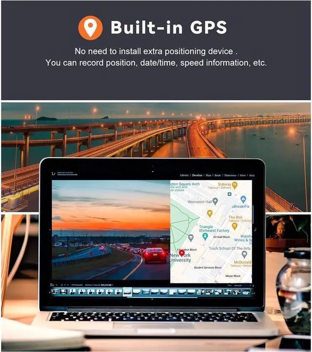 Built-in GPS accurately records your driving location and speed. View your driving route and tracker on google maps via Wi-Fi using the App or with our Car DV Player. We provide FREE Firmware Upgrade for this car camera