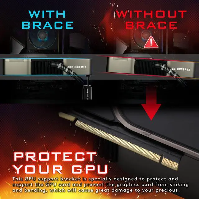Easy installation, no damage to the graphics card, height can be adjusted according to the size of different graphics cards and PC case(67mm/2.63in-106mm/4.17in adjustable).