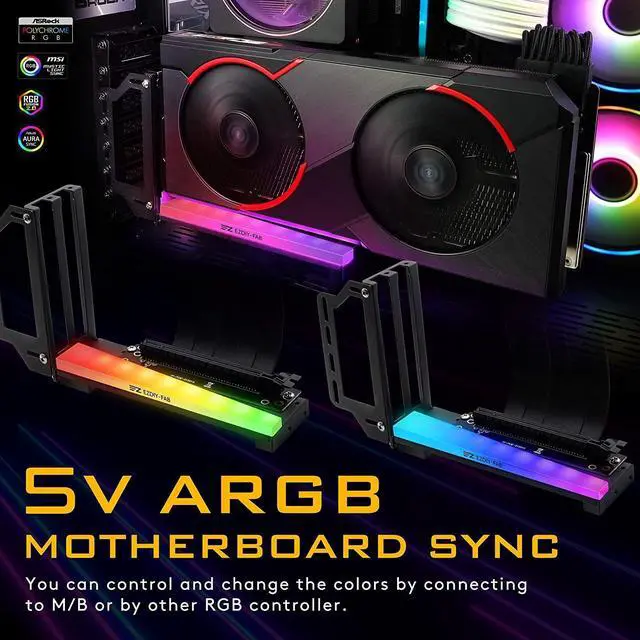 Vertical Graphics Card Holder Bracket with ARGB 5V 3Pin LED,GPU Mount,Video Card VGA Support Kit with PCIE3.0 Riser Cable- Black The 20cm/7.8in PCIE riser with high quality TPE cable and sectional design allows air ventilation and lowers working temperatures for better overall system performance. However, if you intend to use a PCIe 4.0 graphics card, you will need to enter the BIOS and adjust the PCIe slot to Gen3 mode, as the riser only supports PCIe 3.0.