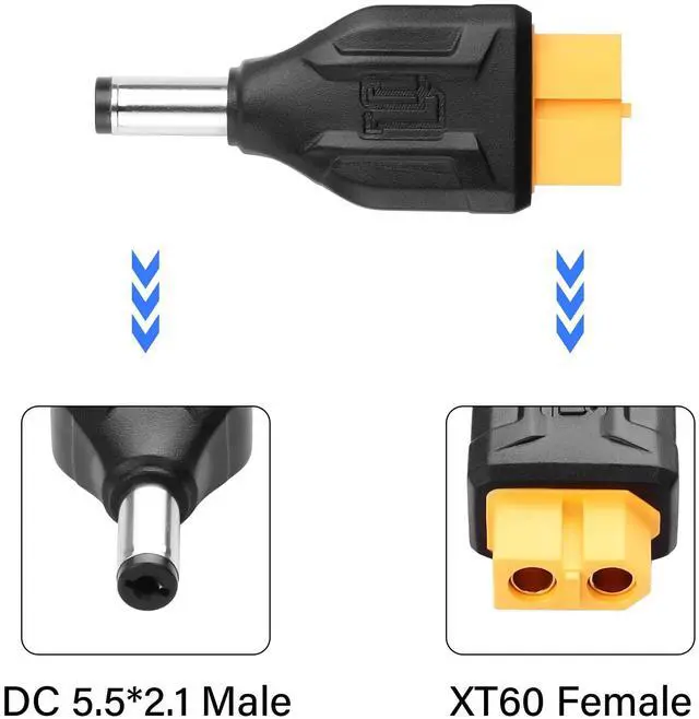 • Connector 1: XT60 female. Connector 2: DC 5.5mm X 2.1mm male.