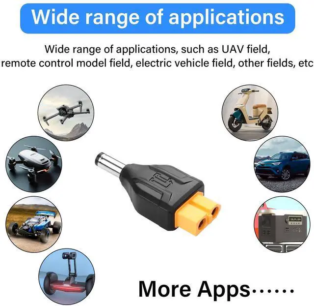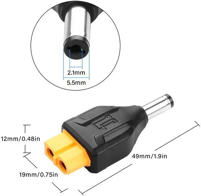 • 2pcs XT60 to DC 5.5mm X 2.1mm adapter,no cable design can save more space,small size,light weight,easy to carry.