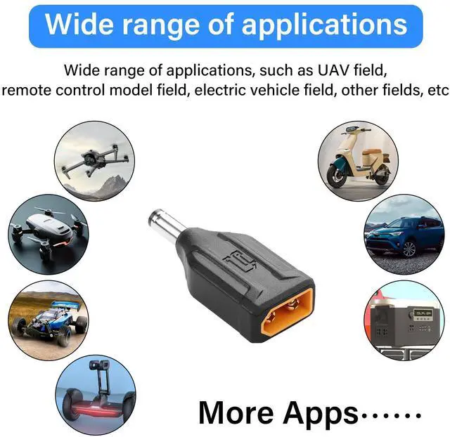 • 2pcs XT60 to DC 5.5mm X 2.1mm adapter,no cable design can save more space,small size,light weight,easy to carry.