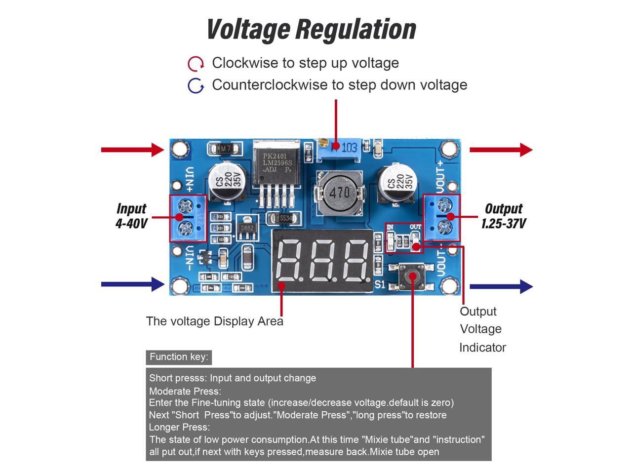 - JTAREA LM2596 Adjustable Buck Converter DC-DC - Measure More Accurate Voltage.