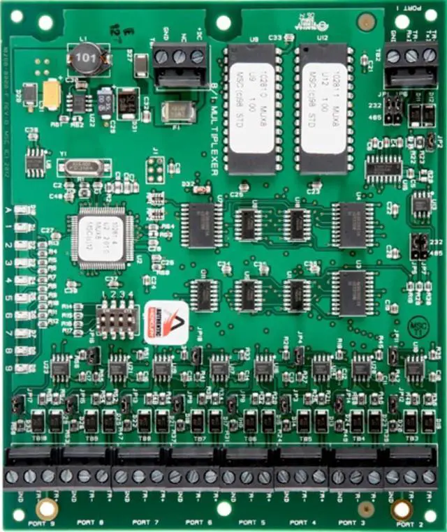 The access platform MUX8 8-port multi-device interface panel adds flexibility to expand a single data line into multiple data lines to meet difficult system design and installation challenges. Common uses include star topology, wiring schemes, home-run wiring, or when wiring distances exceed the 4000 ft. limit of the RS-485 standard.