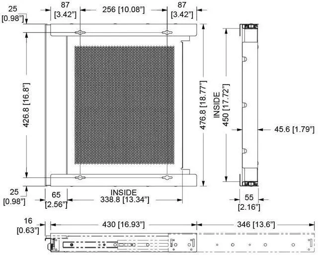 External Dimensions: 18.74 wide x 17.56 deep x 2.17 high (inches)