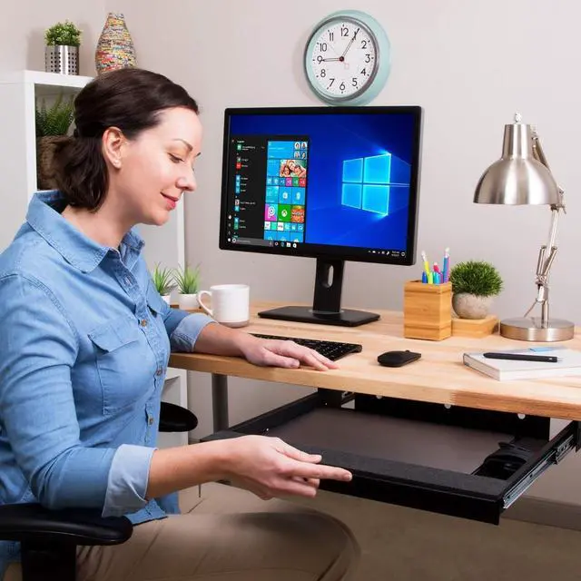 FAST AND EASY SET UP: This unique sliding laptop tray comes with all the mounting hardware you need to easily install the brackets on the underside of desks with strong, sturdy bolts. It can also be installed on other worktops that have a lip. ^^
