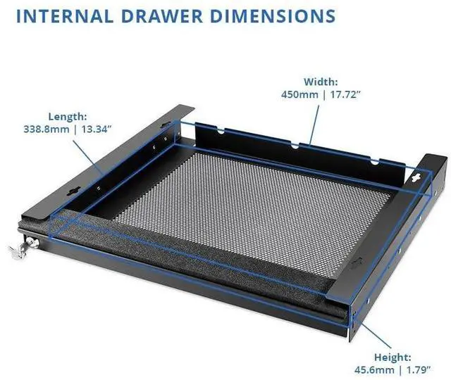 ^^ PERFECT SPACE-SAVING SOLUTION: Whether youre using a laptop at home, in an office or at school, this under-desk tray will keep it conveniently stored. It is designed for 17-inch laptops or smaller notebooks, and it has a height of 1.8 inches.