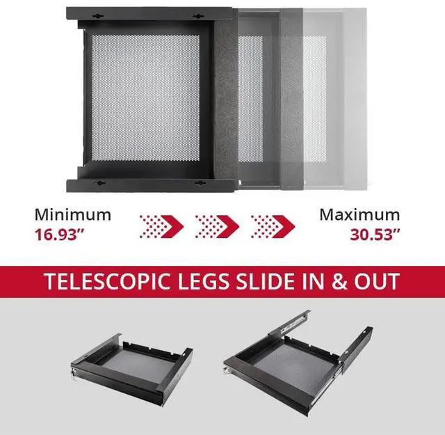 ^^ PERFECT SPACE-SAVING SOLUTION: Whether youre using a laptop at home, in an office or at school, this under-desk tray will keep it conveniently stored. It is designed for 17-inch laptops or smaller notebooks, and it has a height of 3 inches.