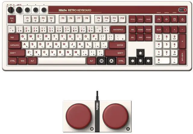 AKNES 8BitDo Retro 108 Mechanical Keyboard, Hot Swappable Gaming Keyboard with 108 Keys, Integrated Numpad, Dual Super Buttons, Bluetooth/ 2.4G /USB-C for Windows & Android - Fami Edition