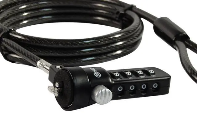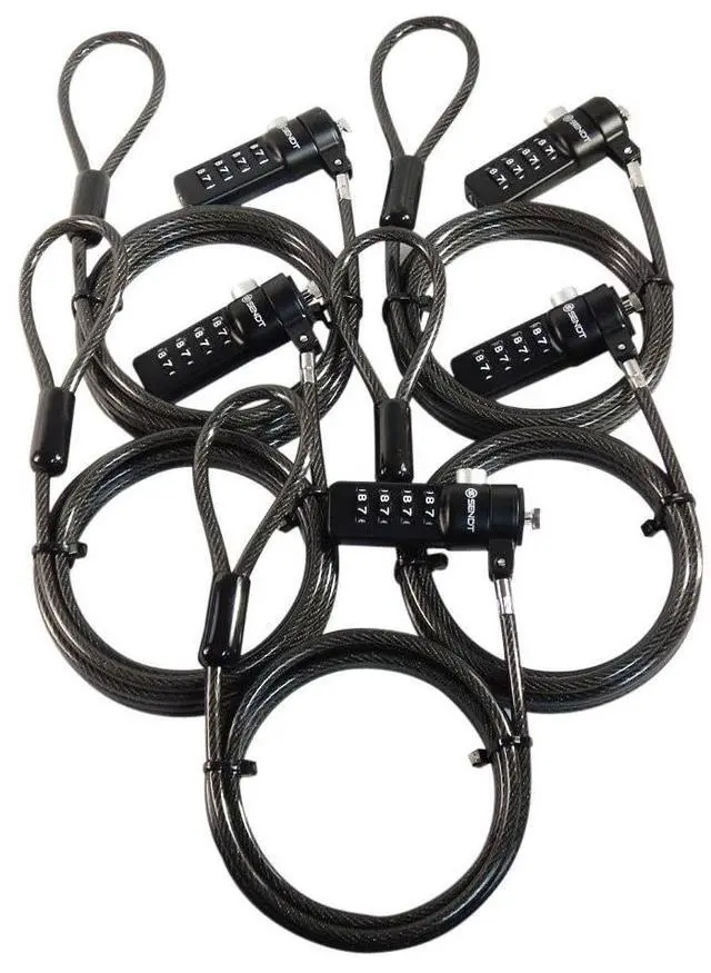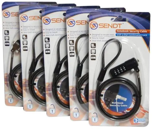 Fits devices with a Kensington security slot. Does not fit Dell laptops, Kensington Nano or Noble wedge security slots. ^^ Five Black Cable Locks. 6 foot cable length. ^^ 4 dial combination lock with up to 10, 000 user-settable combinations ^^ Zinc alloy material ^^ Superior design that prevents accidentally resetting the combination