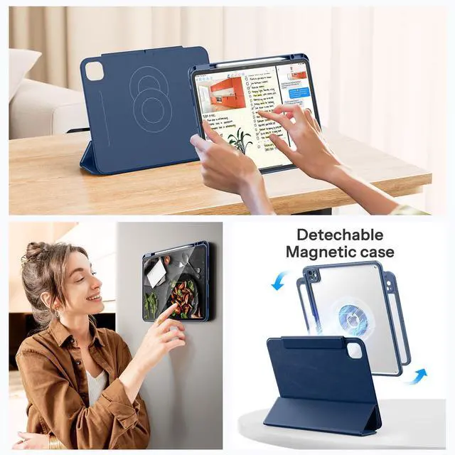 Adjustable Stand: Customize your iPad experience with 5 unique use modes. The detachable magnetic case provides hands-free viewing, reading, or typing experiences, and the clear back case can be easily to detach for ergonomic comfort during cooking or gaming