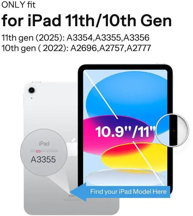 Compatibility: Only compatible with iPad 11th A16/10th generation (2025-11 inch, 2022-10.9 inch), (models number: A3355 A3356 A2757 A2777 A2696). NOTE: Please remove the inner and outer film before putting on the clear back case
