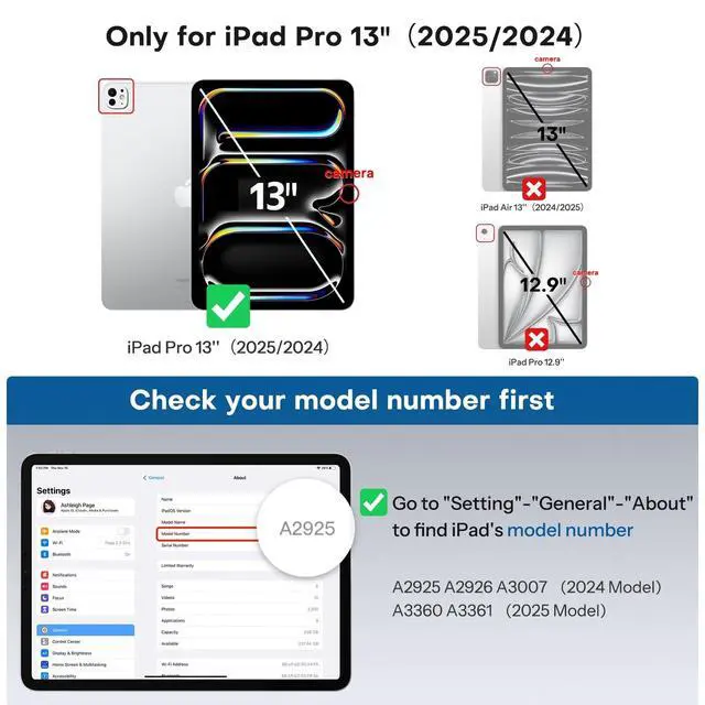 Compatibility: Only compatible with iPad Pro 13 inch 2025/2024, Models number( A2926, A2925 A3360, A3361, A3007).