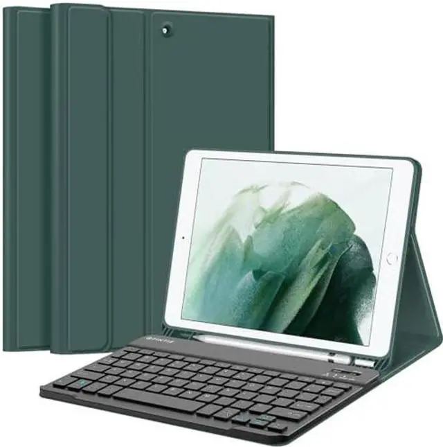 Fintie Keyboard Case for iPad 9th / 8th / 7th Generation (2021/2020/2019) 10.2 Inch, Soft TPU Back Stand Cover with Pencil Holder, Magnetically Detachable Bluetooth Keyboard, Midnight Green