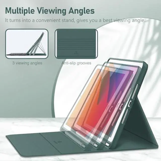Durable PU leather cover and anti-slip rubber-lined interior provide full protection for your tablet. Soft flexible TPU back shell protect your iPad 10.2 from shocks, drops and impacts. Support auto sleep/wake function by CASE ONLY mode.