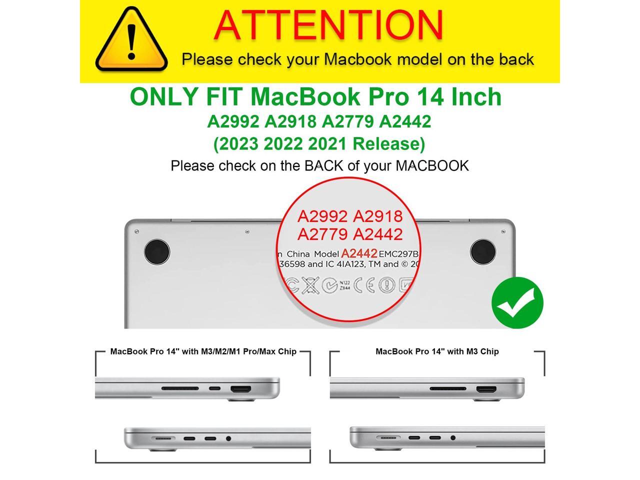 - Specifically designed for MacBook Pro 14 Inch 2023 2022 2021 Release A2992 A2918 A2779 A2442 M3 Pro / M3 Max / M3 / M2 Pro / M2 Max / M1 Pro / M1 Max Chip with Liquid Retina XDR Display & Touch ID. Not Compatible with other model laptops.