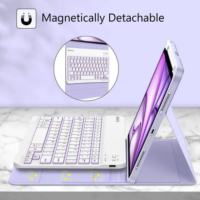 Fintie Keyboard Case for iPad Air 11-inch M2 (2024), iPad Air 5th Generation (2022) / iPad Air 4th Gen 10.9" - Soft TPU Back Cover w/Magnetically Detachable Bluetooth Keyboard, Backlight/Purple