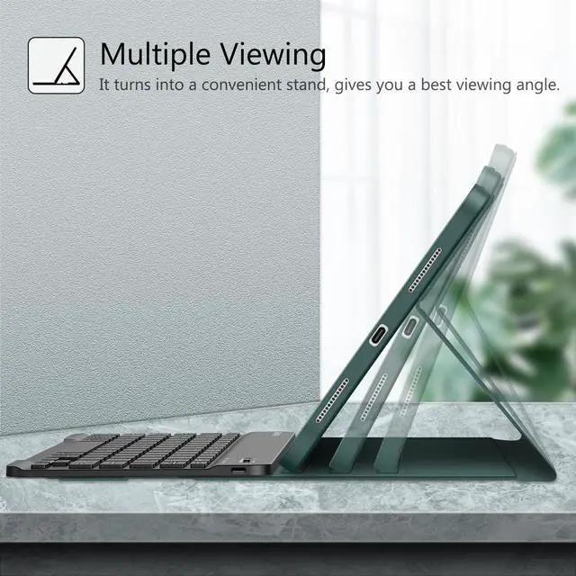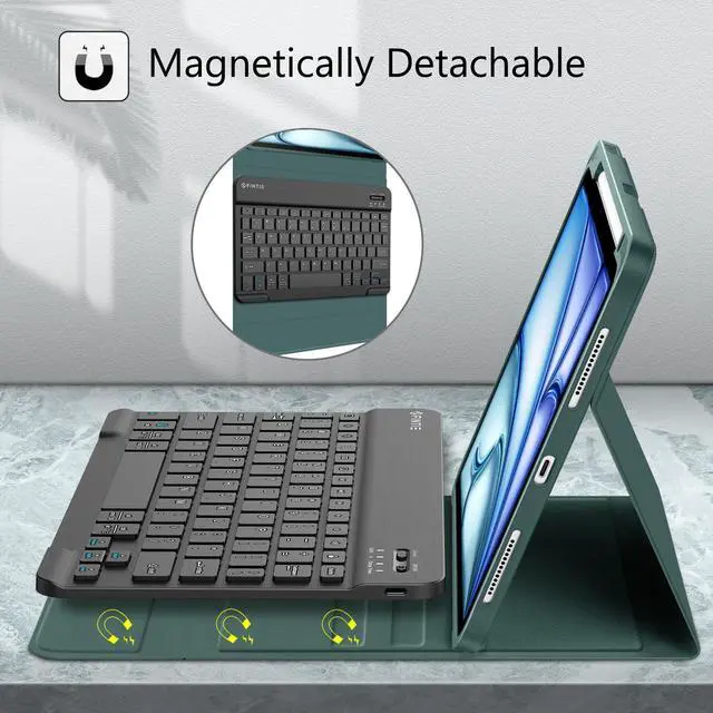 This case comes with a detachable bluetooth keyboard that seamlessly connects with the iPad for a quicker and more comfortable typing. A spring mechanism underneath each key ensures a tactile response with every stroke, helping you to type faster and with less error than on a touchscreen. Ultra-slim design adds maximum protection with minimal bulk ( 0.38 in). Find the angle in landscape mode just right for you with the adjustable stand that customizes to your personal viewing preference. All features of the iPad are accessible even with the case on. This versatile and protective case from Fintie features a removable keyboard that lets you switch between work and play with ease anywhere you use your iPad.