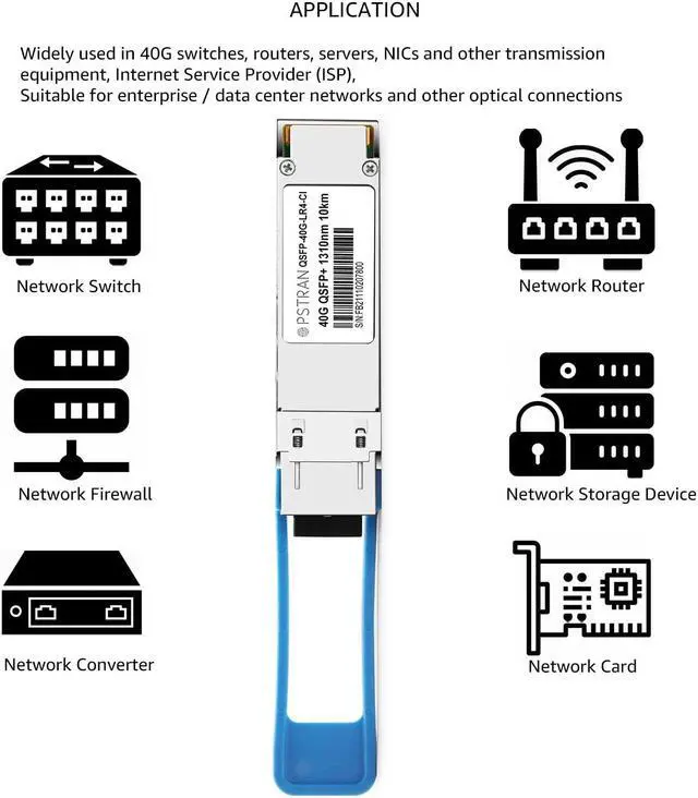 • 40GBASE-LR4 QSFP+ Optical Transceiver Module, Built-in high performance Chip, Max. Power Consumption 3.5W enable Prolonged Service Life, Commercial Temperature Range 0 to 70degC (32 to 158degF)