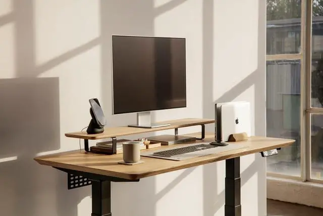 Oakywood Dual Laptop Vertical Stand made of solid oak wood allows you to store two of your favorite devices at the same time. Thanks to the additional layer of felt included with each set, you can adjust the slot to your device - to ensure a safe and firm hold. The steel base that connects the wooden elements enables storing tablets, eReaders & laptops of various dimensions and weight. The one-of-a-kind geometric design fits perfectly with the rest of Oakywood accessories - including charging docks, succulent planters, and monitor stands.