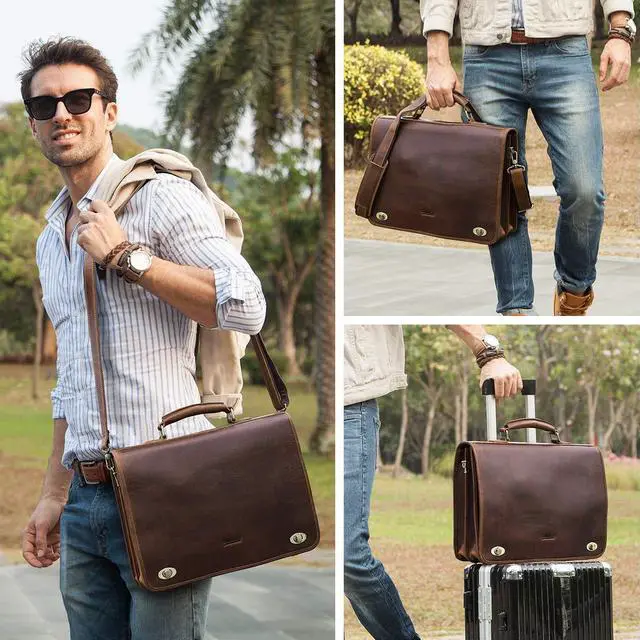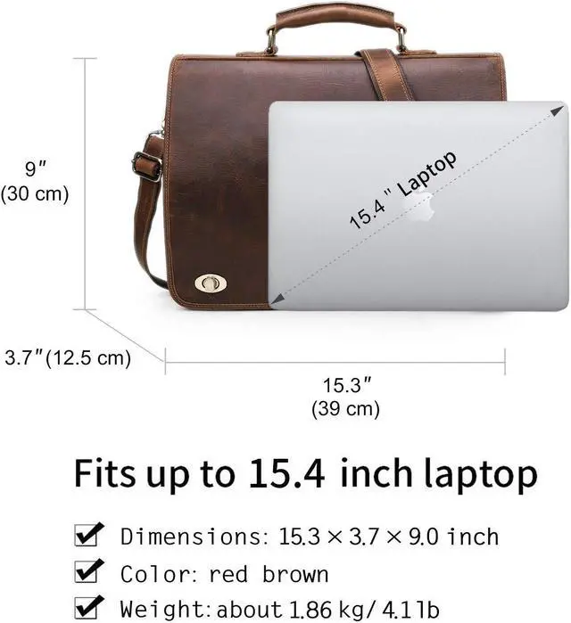 Leather bag offers ample space for you to carry your 15.4 inch laptop, books, charger cable and other accessories.