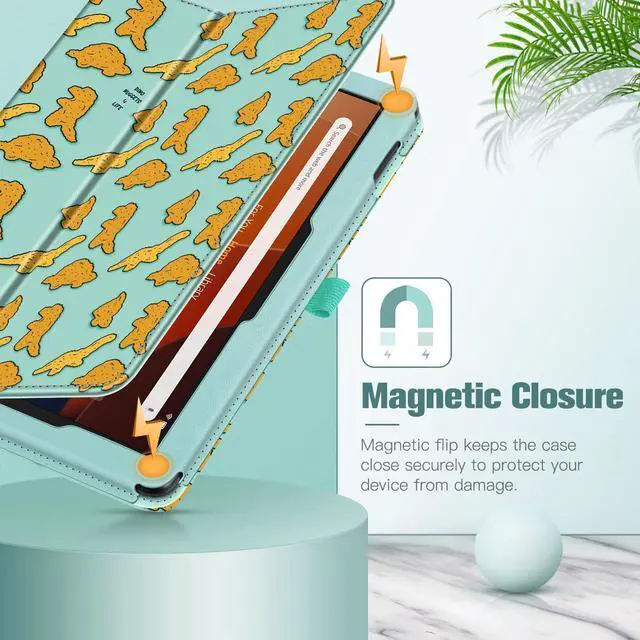 Fintie Folio Case for All-New Fire HD 10 and 10 Plus Tablet (13th/11th Generation, 2023/2021 Release) - Slim Fit Standing Cover with Auto Sleep/Wake, Dino Nuggets