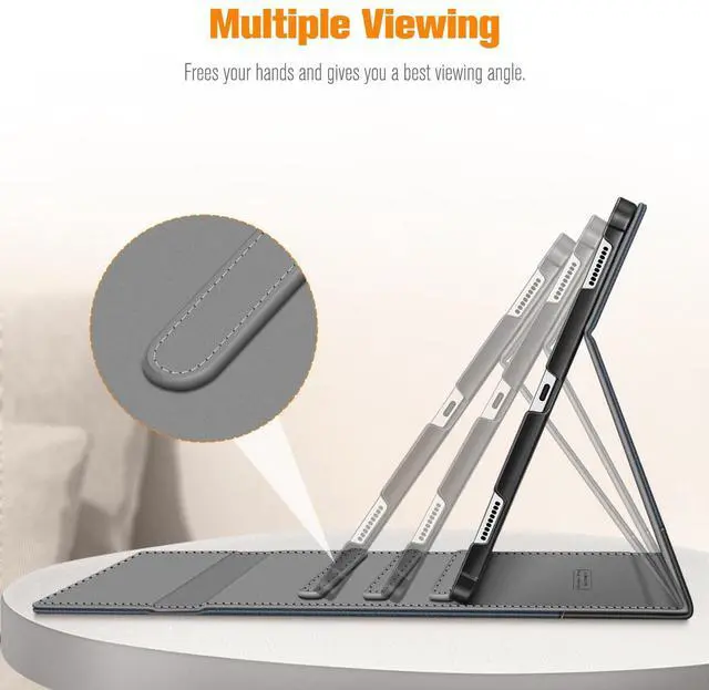 Multiple Viewing Angles: Three anti-slip stripes allow you to adjust the tablet to multiple angles securely. Built-in magnetic strip provides sleep / wake feature