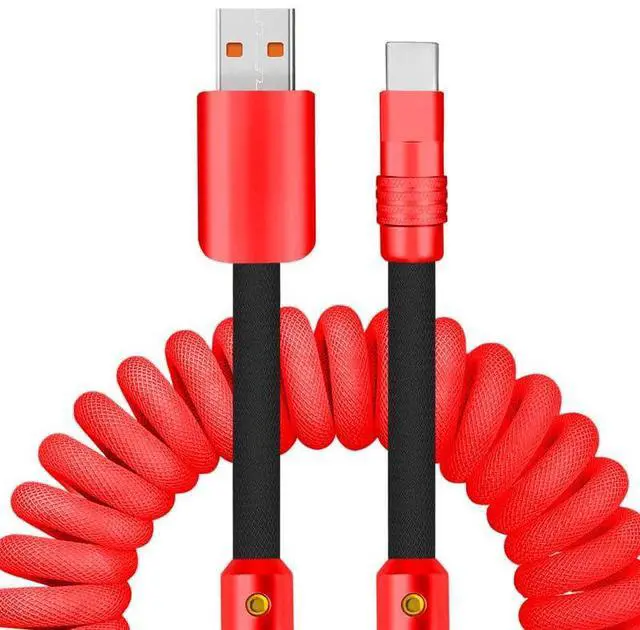 chubbycable Curly Chubby - 240W Coiled USB C Cable Spring Retractable Fast Charging Cable for Car Compatible with CarPlay, Android Auto, Red+Black, USB-A to Type-C, 2.29FT-3.6FT