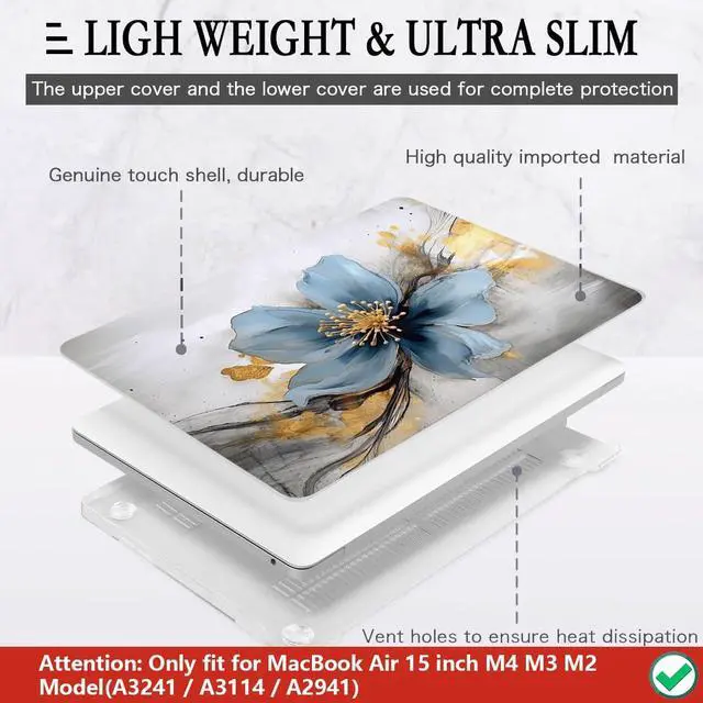 This case is ONLY compatible with MacBook Air 15 Inch Model A2941 M2 Chip/A3114 M3 / A3241 M4 Chip with Liquid Retina Display and Touch ID 2023 2024 2025 release.