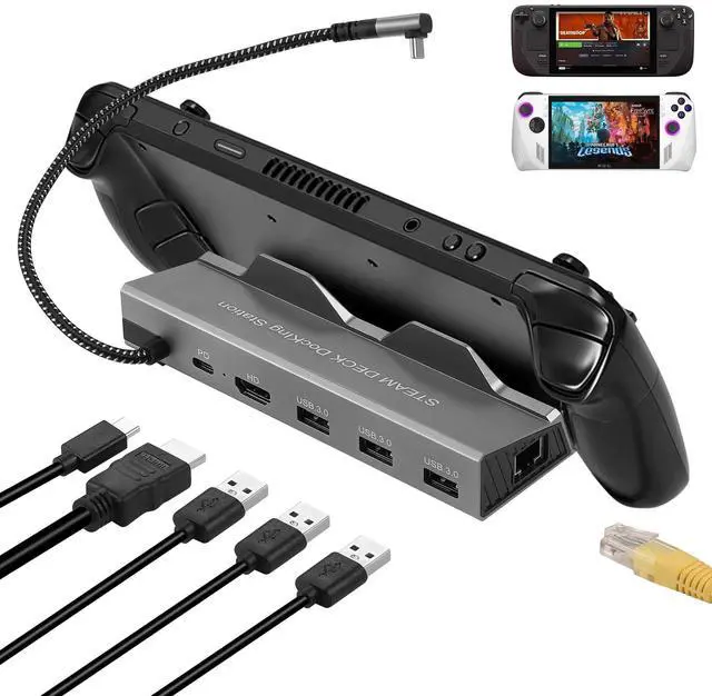 Docking Station for Steam Deck ROG Ally, 6 in 1 Steam Deck Dock with HDMI 2.0 4K@60Hz, 1000Mbps Gigabit Ethernet, 3 USB-A 3.0 and 100W Full Speed Charging USB-C Port Compatible with Valve Steam Deck
