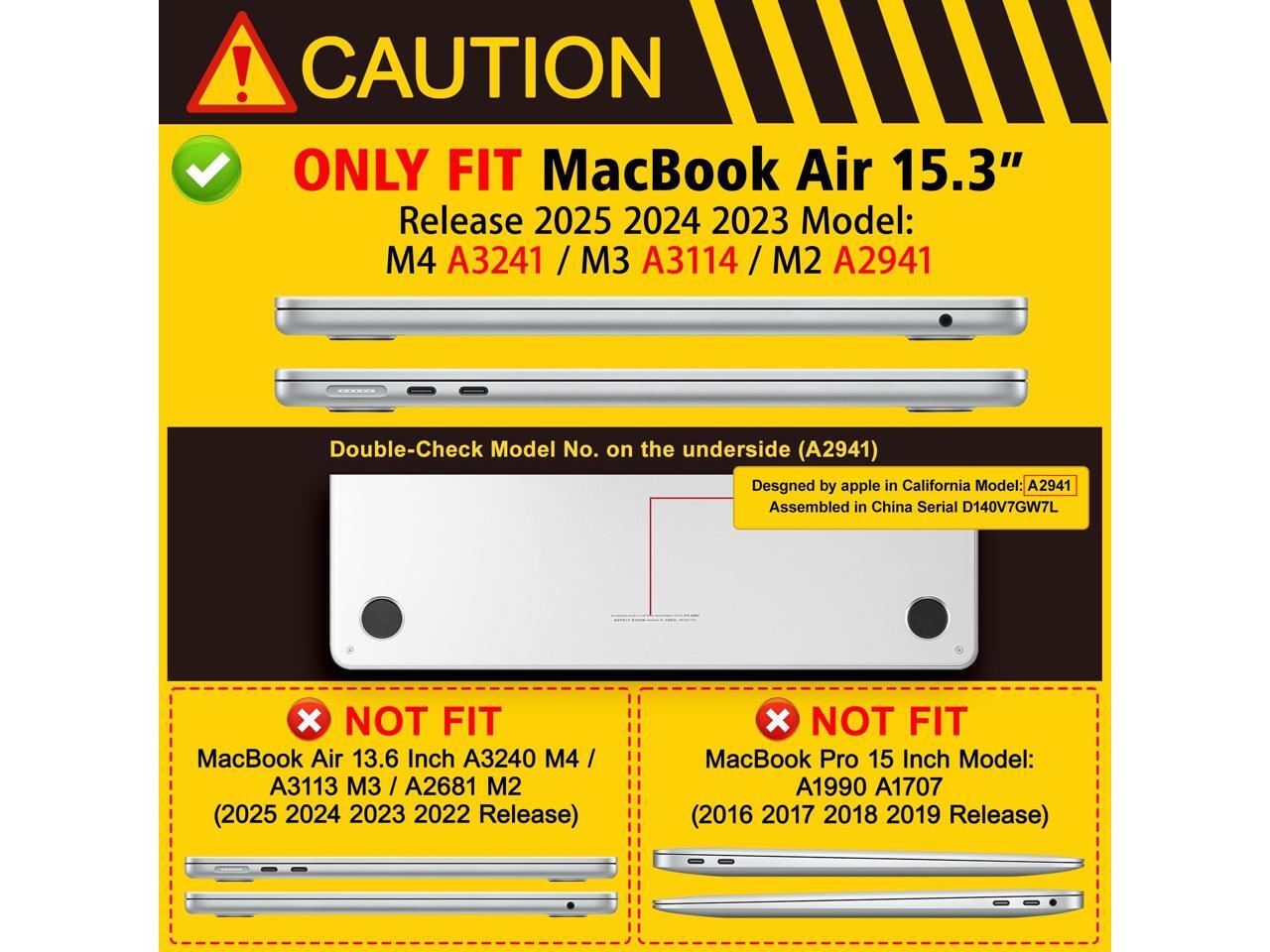 - Compatible with: Designed Only to be compatible with Macbook Air 15 inch 2023 2024 2025 M4 M3 M2 chip with Liquid Retina Display and Touch ID ( Model: A3241, A3114, A2941 ). Compatibility Warning: This case is NOT compatible with other laptop models. Please kindly check your laptop modle number like "A2941" on the back of the laptop before your purchase