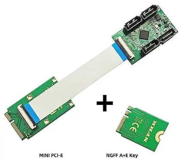 NFHK Mini PCI-E PCI Express & NGFF A+E Key to SATA 3.0 Four Ports Adapter Cable 6Gbps Hard Drive Extension Card for SSD