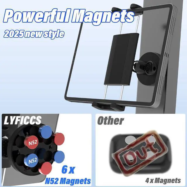 [Strong Magnetic Mount]: The tablet mounting magnetic base is made of high-quality new magnetic metal and plastic parts, with special magnetic circuit design and production process. The base is composed of 6 neodymium iron boron magnets. It can be firmly attached to any iron metal surface