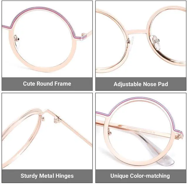 Zeelool Cute Mental Round Blue Light Blockung Glasses for Women JGM849438-02 Colorful