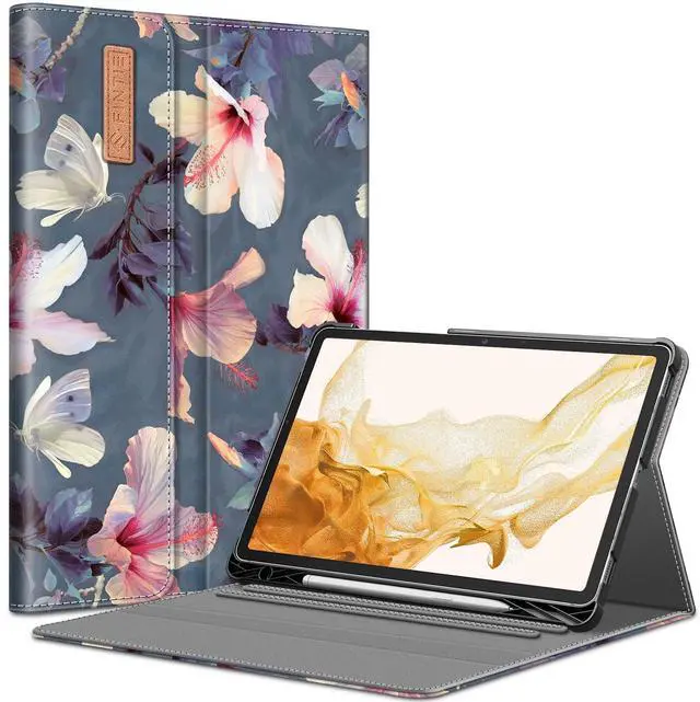 Fintie Case for Samsung Galaxy Tab S8 Plus 2022/S7 FE 2021/S7 Plus 2020 12.4 Inch with S Pen Holder, Multiple Angle Portfolio Cover with Pocket Auto Sleep/Wake, Hibiscus