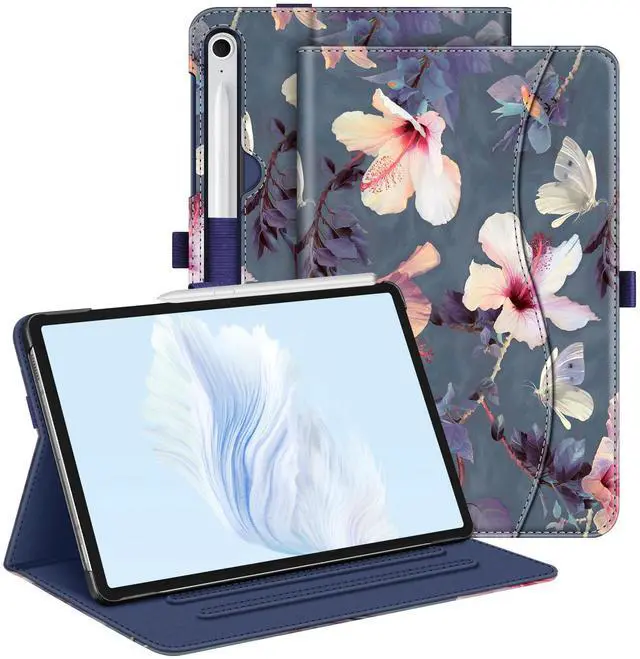 Fintie Case for Samsung Galaxy Tab S10 FE/ S9 FE 5G 10.9 Inch/Tab S9 11 Inch, Multi-Angle Viewing Protective Cover with Pocket, Auto Sleep/Wake, Blooming Hibiscus