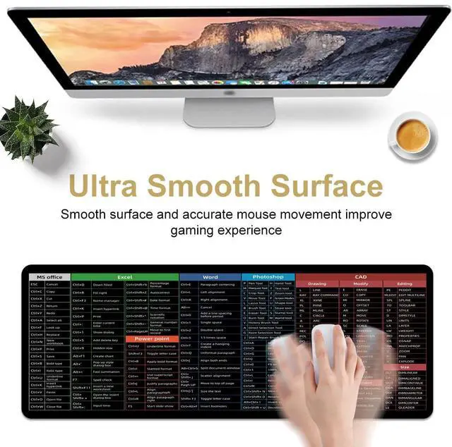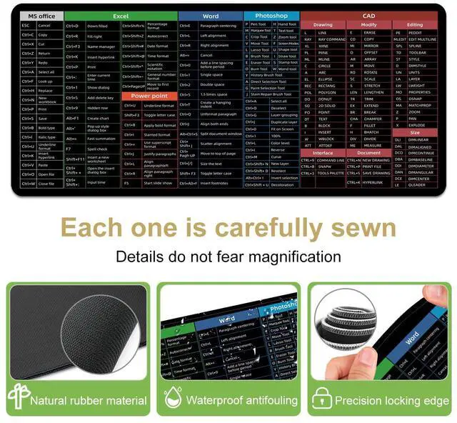 Boaulee MS Office/Excel/Word/Photoshop/CAD/Office Sheet Desk pad, Windows Large Gaming Office PC Mouse pad,Keyboard Shortcuts Mouse pad,Non-Slip Waterproof Desk mat,XXL 35.4 x 11.8 in -TS1059