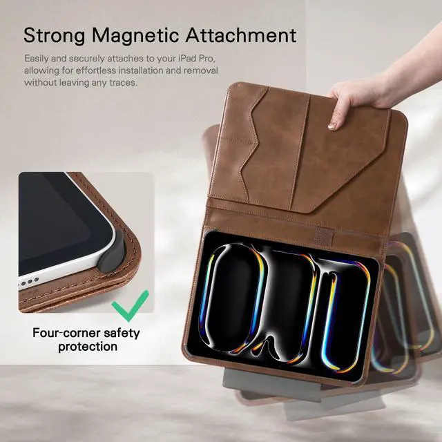 CoBak Premium Leather Case for iPad Pro 11-inch (M4) 2024 (5th Generation), Built-in Folder Storage, Super Magnetic Back, Auto Sleep/Wake Function, Cowhide Brown