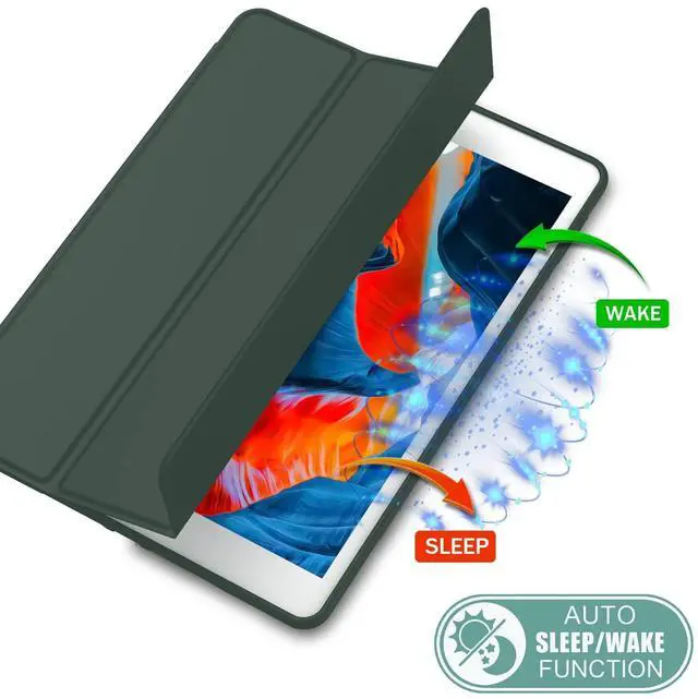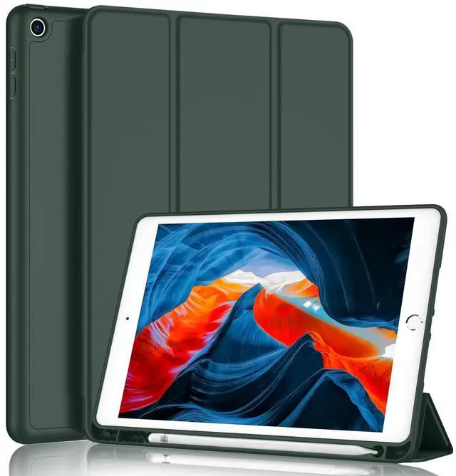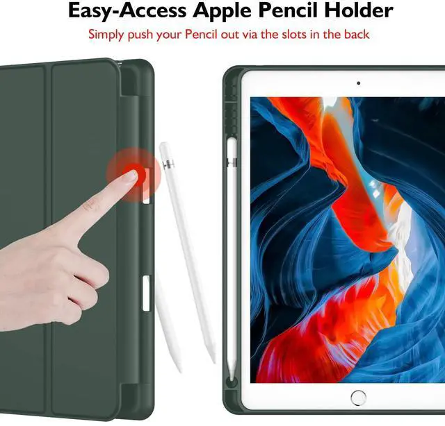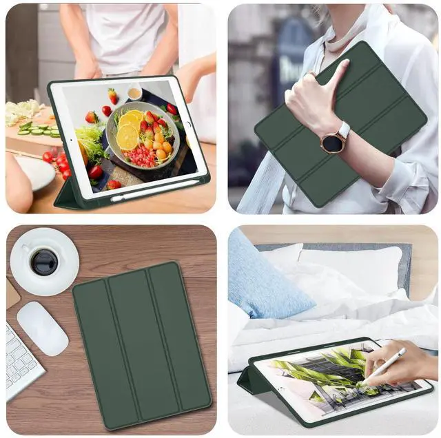 iMieet iPad 9th Generation Case 2021/iPad 8th Generation Case 2020 10.2 Inch with Pencil Holder, iPad 7th Gen 2019 Case with Soft Baby Skin Silicone Back, Auto Wake/Sleep Cover(Dark Green)