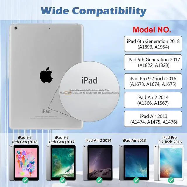 Wide Compatibility: ZoneFoker 9.7 inch case is compatible with ipad 6th/ 5th generation (2018/ 2017), ipad pro 9.7-inch 2016, ipad air2 (2014), ipad air 2013 (Model: A1893/A1954/A1822/A1823/A1673/A1674/A1675/A1566/A1567/A1474/A1475/A1476) Not fits other ipad models.
