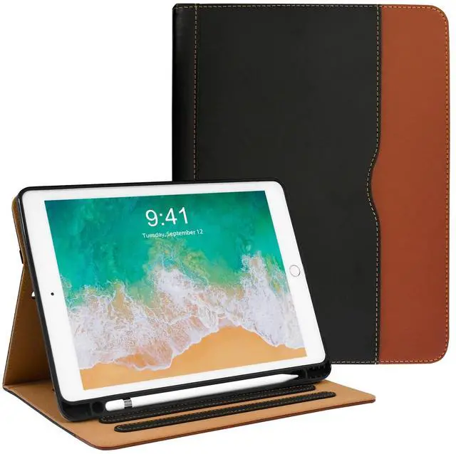 Zonefoker for iPad 6th 5th Generation Cases 2018/2017, iPad Air 2 Case 2014, iPad Air 2013, iPad Pro 9.7 inch Case 2016 with Pencil Holder, Leather Folio Cover for Kids, Women, Men, Black Brown