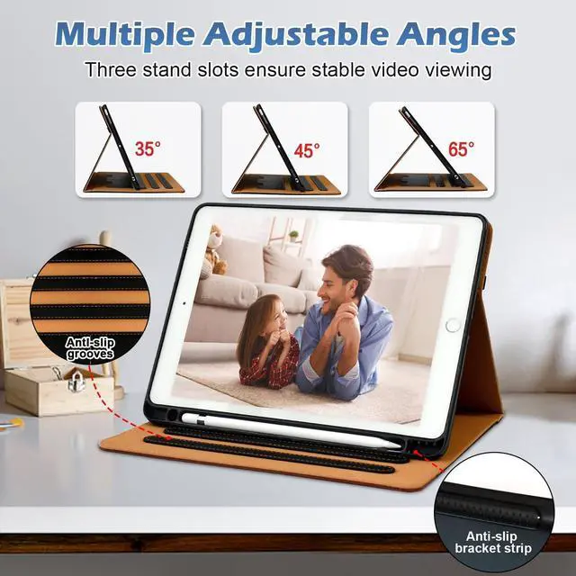 Multiple Adjustable Angle: The ipad 6th gen case has three slots with upgraded anti-slip material, you can easily adjust it to different angle positions to reach your most comfortable viewing and typing angles.