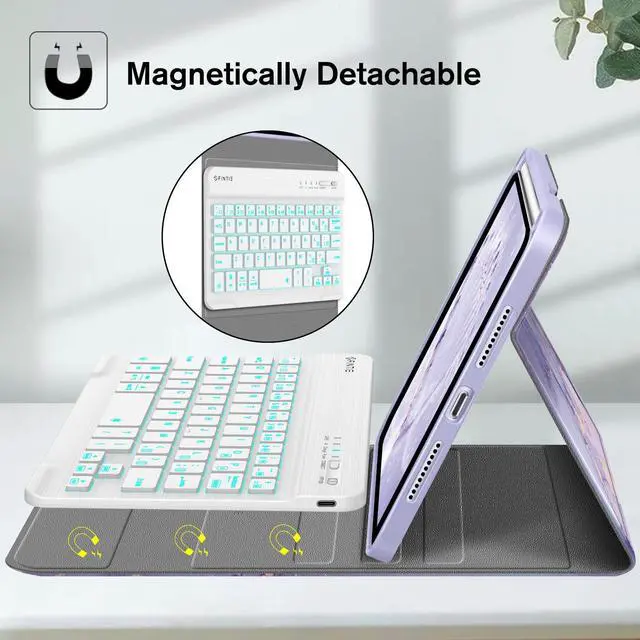 Turn Your Tablet into a Laptop: A Keyboard that supports iOS and Android Systems. Experience seamless operation with no need for switching. Magnetically detachable super slim 7mm and light weight bluetooth keyboard with 14M range. Ergonomic and mechanical scissor keys with rebo