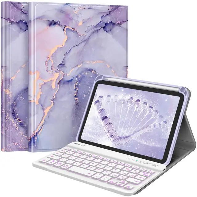 FINTIE Keyboard Case for iPad mini (A17 Pro) 7th Generation 2024 / iPad mini 6th Gen 8.3 Inch, Soft TPU Back Cover with Magnetically Detachable Wireless Bluetooth Keyboard, Backlight/Lilac Marble