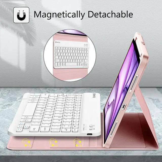 FINTIE Keyboard Case for iPad Air 11-inch M3 (2025) / M2 (2024), iPad Air 5th (2022) / 4th Generation 10.9 Inch - Soft TPU Cover w/Magnetically Detachable Bluetooth Keyboard, Rose Gold