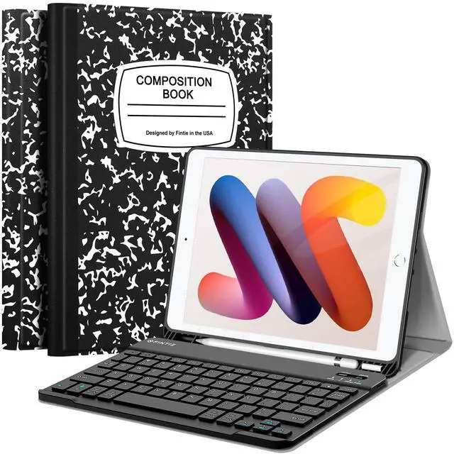 FINTIE Keyboard Case for iPad 9th / 8th / 7th Generation (2021/2020/2019) 10.2 Inch, Soft TPU Back Stand Cover with Pencil Holder, Magnetically Detachable Bluetooth Keyboard, Composition Book