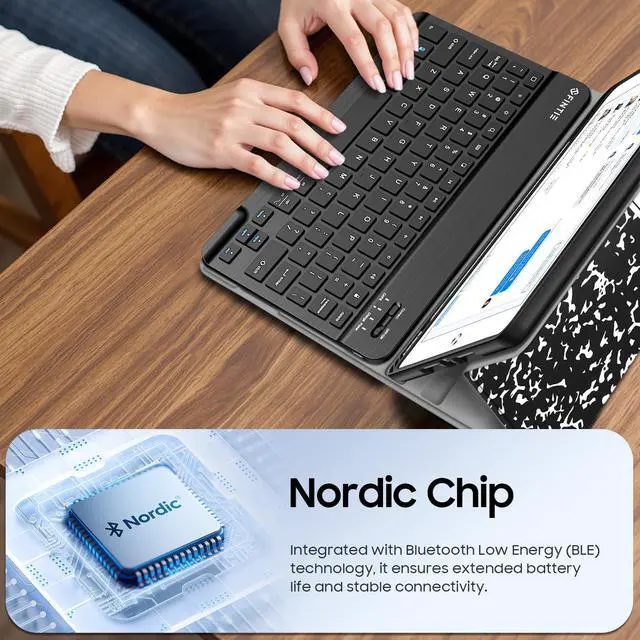 Turn Your Tablet into a Laptop: A Keyboard that supports iOS and Android Systems. Experience seamless operation with no need for switching. Magnetically detachable super slim 7mm and light weight bluetooth keyboard with 14M range. Ergonomic and mechanical scissor keys with rebound feature to reduce noise, enjoy comfortable typing even lon